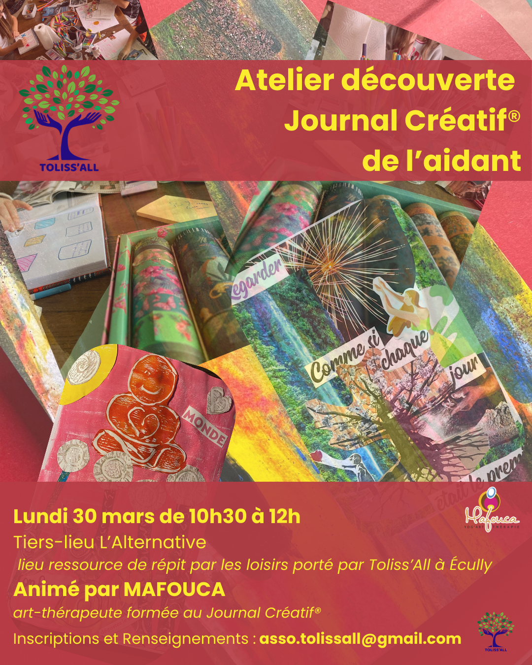 Toliss’All vous propose un atelier découverte du Journal Créatif®, animé par MAFOUCA, art-thérapeute formée au Journal Créatif®.